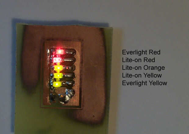 Everlight amarillo y rojo se usaron en el reloj del prototipo. Me gusta naranja y Lite-On rojo mejor, se utilizará en el siguiente reloj que hacer.