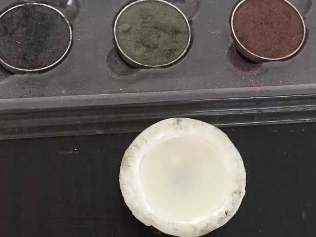 Tiré algunas sombras de ojos-de un color verde oliva, cepillado enérgicamente todo el relieve para profundizar en las características.