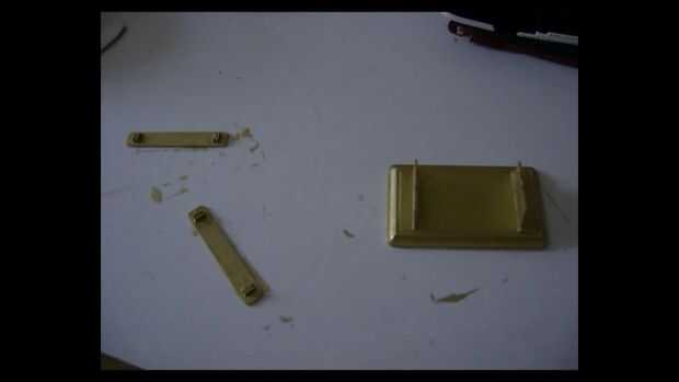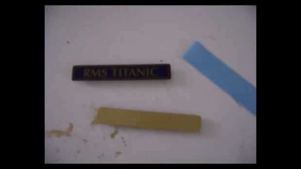 Así que, ahora usted tome las piezas del soporte y píntalas de oro, pero la placa de identificación tienen una imprimación negra y luego añadir oro a la parte que dice "RMS TITANIC". Después de eso, pegan todo junto.