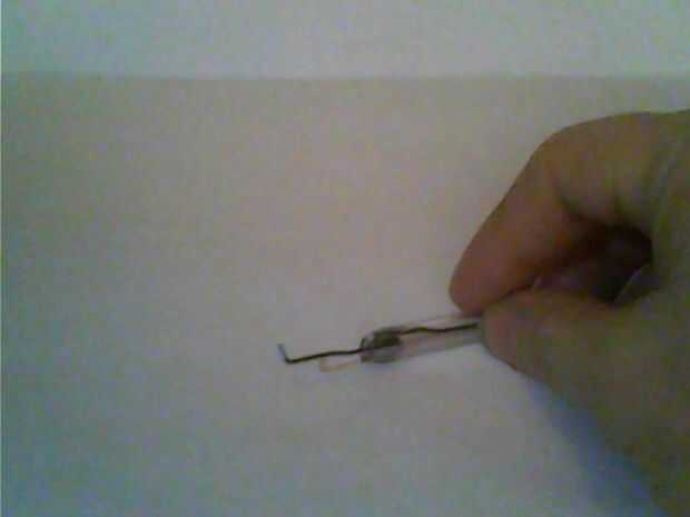 Tomar su primera primavera y usando las pinzas, doblar una curva de pequeño grado noventa - es llave para girar la cerradura de la tensión - hacen la curva lo suficientemente pequeño como para que la herramienta se ajusta a la parte inferior de la cerradura pero no! obstruir le insertar el pico - si es necesario puede utilizar sus herramientas de archivo a fina la llave hacia abajo para facilitar un mejor ajuste.