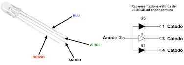 EL LED RGB, es idéntico de forma física tanto de realizar como de cátodo común. Como se ve en una de las imágenes arriba, la pata mas larga es la común. A un lado de esta quedara una sola pata, suele ser la Roja (R), y al otro lado quedaran dos, serán el LED verde (G) y el azul (B) (R-G-B).