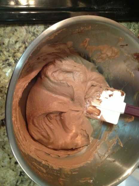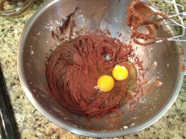 En el recipiente de una batidora equipada con un accesorio de pala, batir la mantequilla a velocidad media durante un minuto. Añadir el azúcar y continuar batiendo hasta liviana y esponjosa, unos 3-5 minutos. Añadir el chocolate enfriado a la mezcla de mantequilla-azúcar y batir hasta incorporar. Añadir 2 huevos y batir a velocidad media durante 3 minutos. Añadir el huevo restante y batir otros tres minutos hasta que la mezcla esté sedosa y suave.