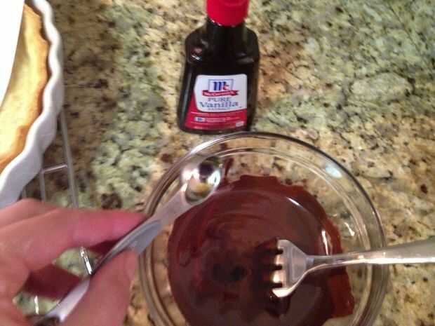 Calentar el chocolate en el microondas en potencia media (unos 45-90 segundos) o sobre la estufa en medio-bajo hasta que derrita. Batir en el polvo de vainilla y café, si usando y dejar de lado que se enfríe.