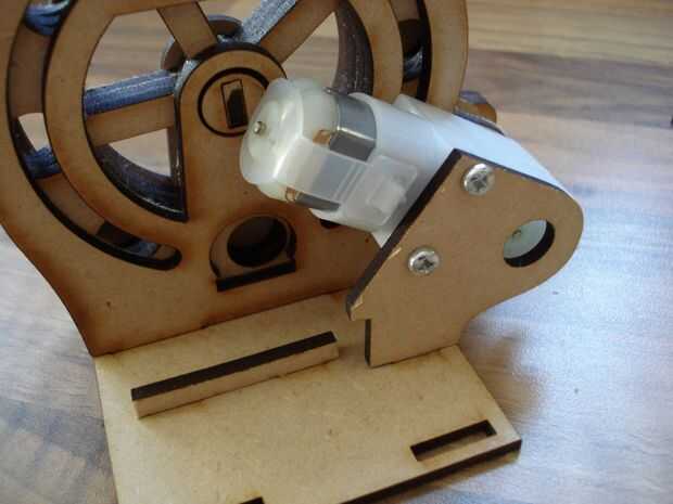 Láser corte montaje del motor de la ranura en la base de la máquina y utilice los dos tornillos para sostener el motor en su lugar. Al mismo tiempo la ranura pequeña batería 'cerca' en la base. Esto mantendrá la batería en su lugar.