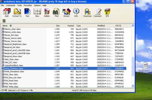 Arrastre y suelte cualquier archivo de clase de ardublock ejemplo "Partie_Emetteur.class"