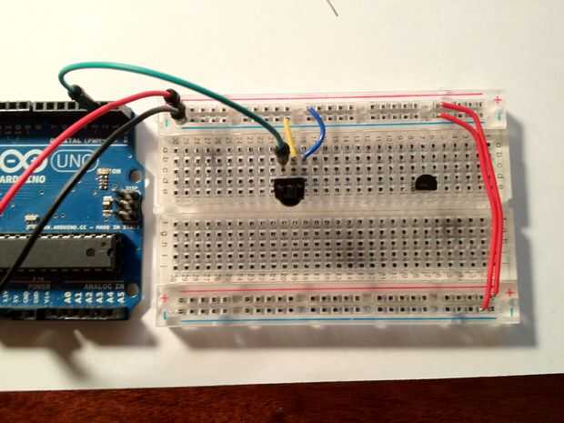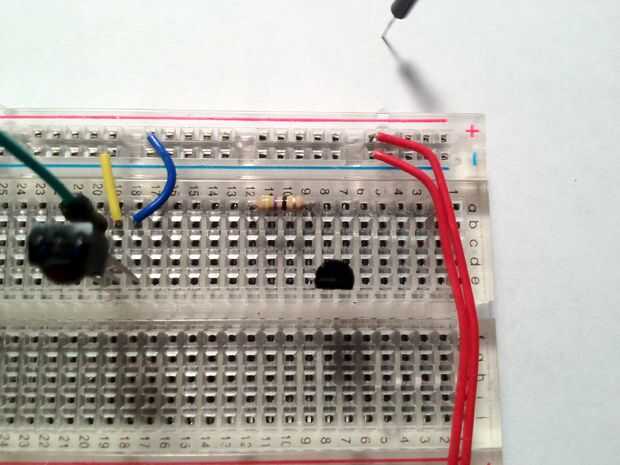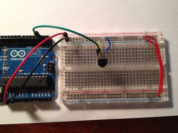 2.) Conecte la clavija de la izquierda del detector pin Arduino Digital 2, la media clavija a tierra y el pin de la derecha a + 3, 3V.