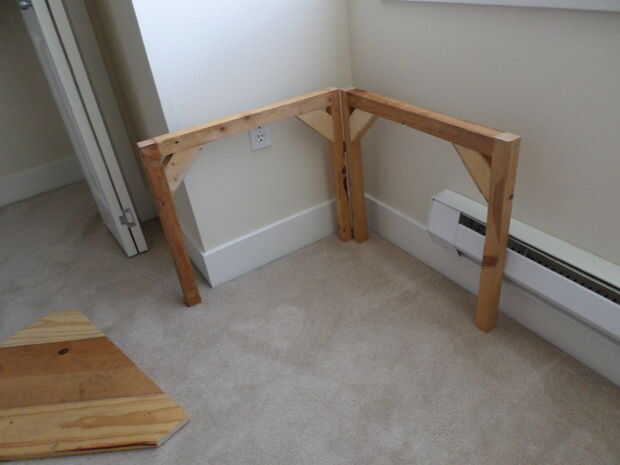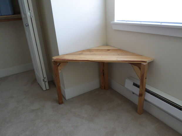 Aquí es mi nuevo rincón TV, hecha de pedazos de paletas. Pasé cincuenta centavos de dólar por par de dos pares de bisagras usadas. Cada bisagra y 4 tornillos de la bisagra vino de segundo uso (usada) materiales de construcción, algo así como hábitat para la humanidad RE: tienda. Calculo que pasé aproximadamente cincuenta centavos para el pegamento de PVC.