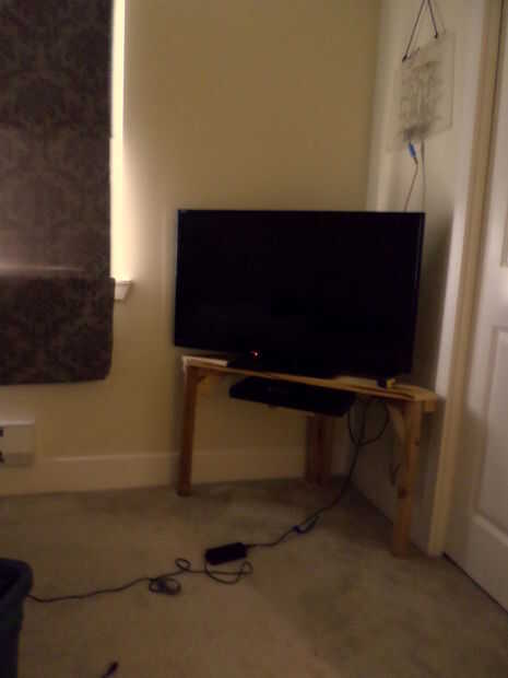 En día de mudanza, debe tomar unos 2 segundos para desmontar y embalar plana. Yo podría res para arriba con un estante por debajo para mi reproductor de DVD y Roku. Además, necesita un poco de lijado y acabado. Pegué a los ensambles de las patas antes de taladrar agujeros piloto y apretándolos post cola-para arriba.