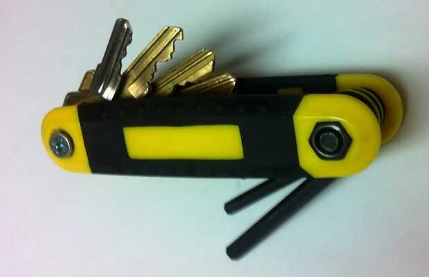 Dispositivos para separar mis llaves y utilizar este cuchillo de las llaves de mi trabajo. Después de unas cuantas copias más encontré un uso más fácil y práctico construir la solución que requiere un mínimo trabajo fabuloso y es prácticamente fuera de la plataforma Compro para el cualquier persona que es herramienta eléctrica de carecer o simplemente está buscando un rápida $1 tienda hack.