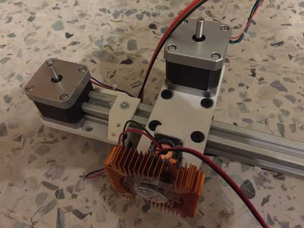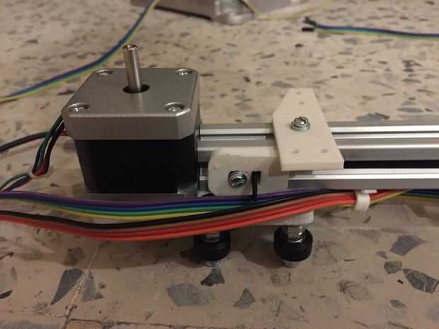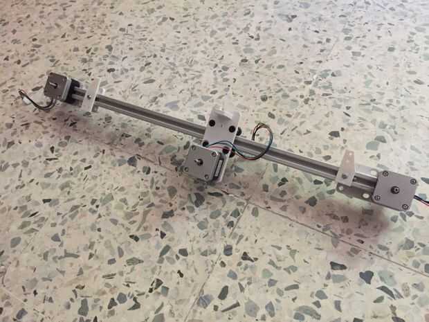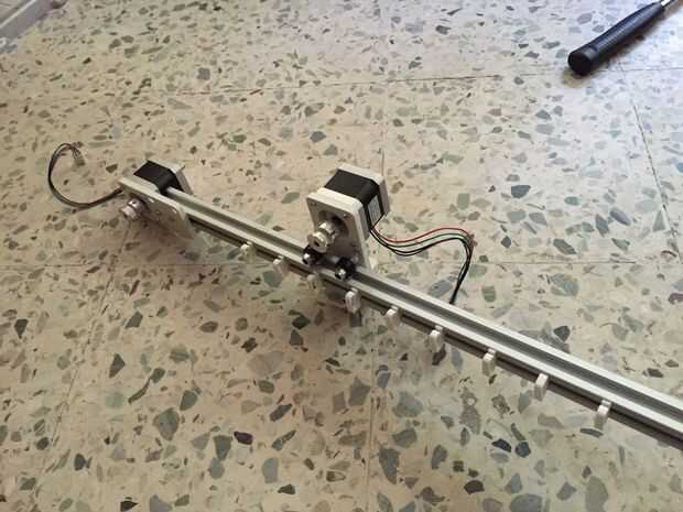 En primer lugar, usted necesitará construir los montajes individuales para motores paso a paso a cada lado del carro de eje x. Estos motores son para el movimiento del eje y. Se puede hacer con un solo motor pero tienden al eje del arco y por lo tanto perder resolución.