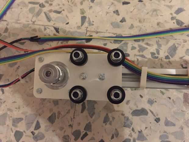 Aún no apriete la polea en el motor. Una vez que el soporte se fija a las ranuras en V, usted necesitará la correa de alimentación y en función de su posición necesita apretar la polea. Construir estos pero no montar en el carro de eje x todavía.