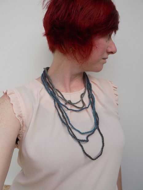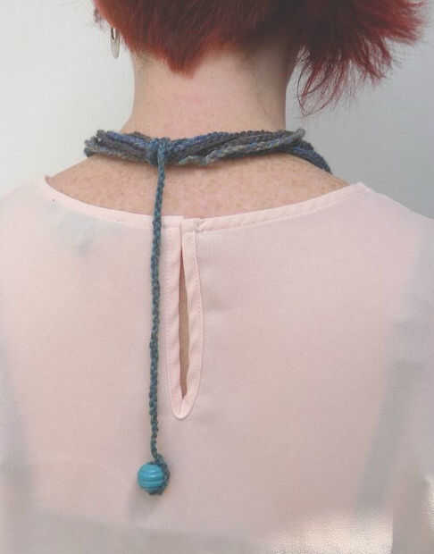 Tire el collar encima de la cabeza dejando al final de cuentas pendientes en la parte posterior.