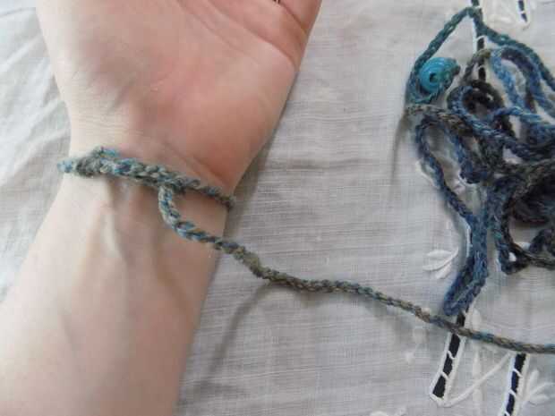 -Comenzar con el lazo base alrededor de su muñeca. Enrolle la cadena alrededor de su muñeca hasta que haya unas cuantas pulgadas a la izquierda al final.
