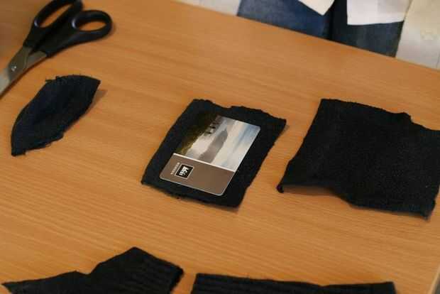 Tomar la parte media de la suela y aplanar abajo. Inserte sus tijeras y corte a lo largo de uno de los pliegues, convirtiendo su cilindro en un rectángulo. Luego, coloque la tarjeta de crédito en la pieza rectangular, dejando 1 cm del borde. Cortar el rectángulo que tiene un margen de 1 cm a lo largo de los cuatro lados de la tarjeta. Ahora han tamaño la pieza para el bolsillo!