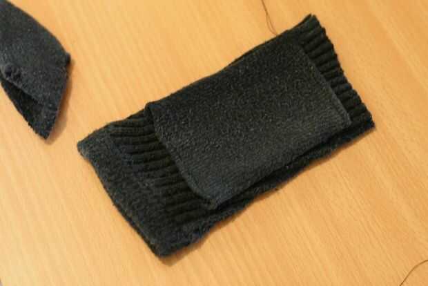 También, en un paso opcional, uno de los bordes del tubo está ya terminado y limpio porque era un borde en el calcetín, pero el otro borde (uno donde la parte del talón se redujo de), está abierto y puede deshilacharse. Puede que desee a este borde utilizando el mismo pliegue el dobladillo (y tal vez doblar una vez más) método que se muestra en el paso 2.