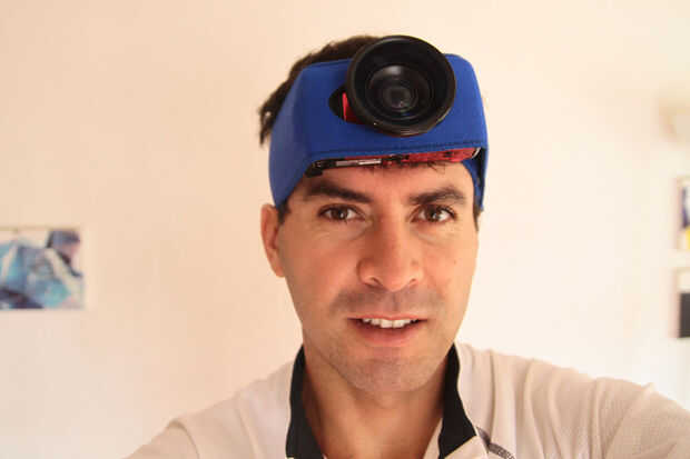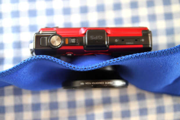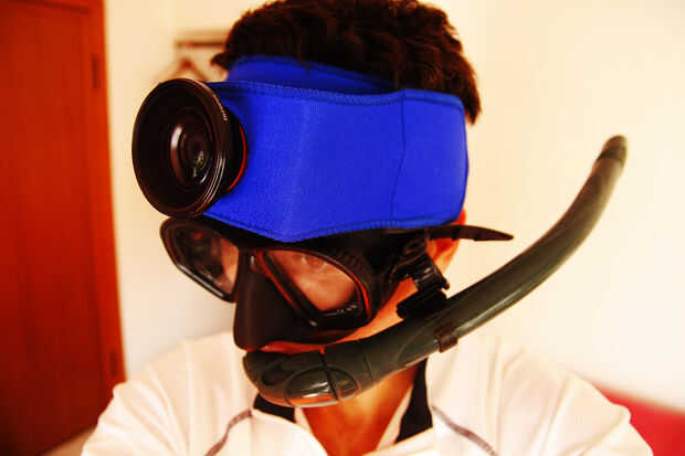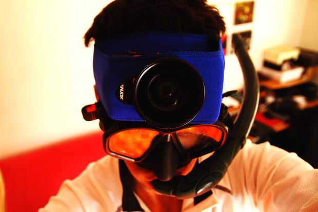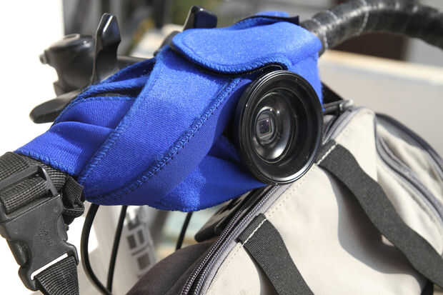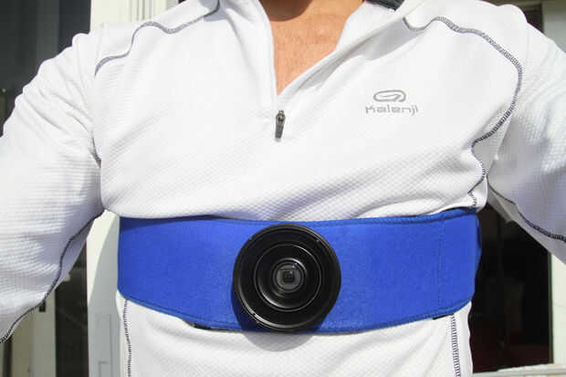 3. Coloque la cámara detrás del agujero y envuelva la banda de neopreno alrededor de su cabeza, alrededor de la cintura, alrededor del brazo o alrededor de su pecho. Incluso puede atar la cámara a una bicicleta, un monopatín, su espejo retrovisor car´s o apenas sobre en cualquier lugar.
