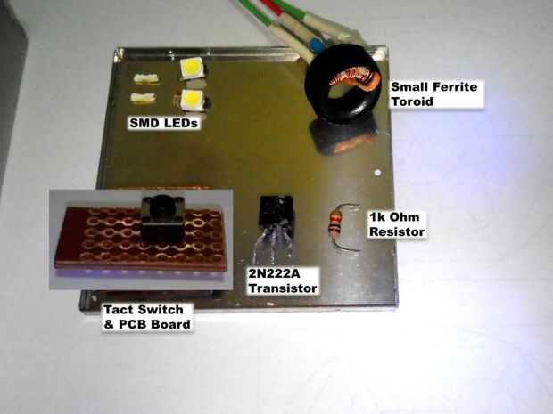 • 1 toroide de ferrita pequeño (de muertos bombillas CFL)