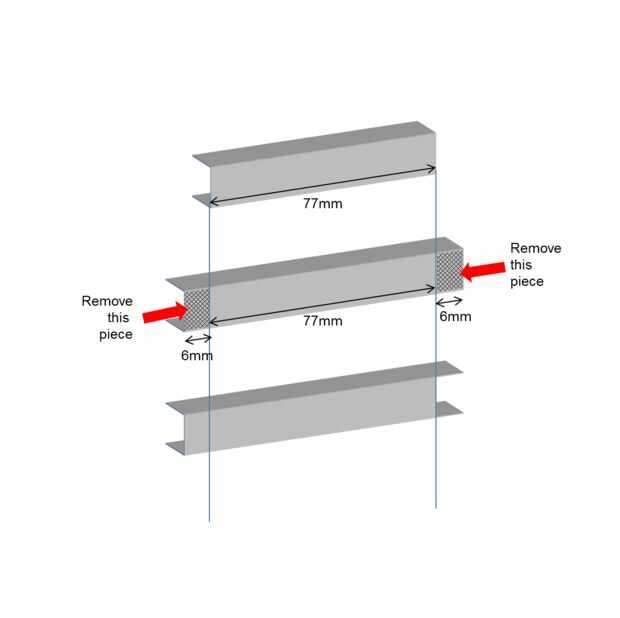 Usando una sierra para metales, hacer 2 piezas con una medida 77mm y otro 89mm de longitud.