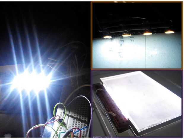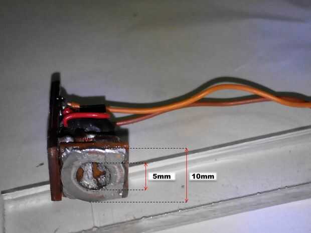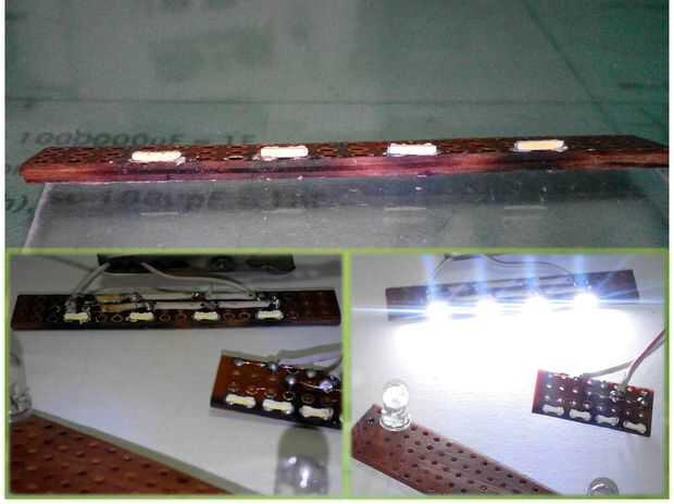 El módulo LED constan de 4 LEDs SMD que extraje de un reproductor de MP3. Los cuatro se conectan en paralelo soldada sobre un trozo de PCB mide 50 m m (W) x 10mm (D). 2 cables irá al interruptor.