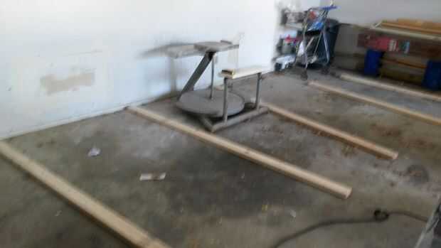 2. Coloque un 2 x 4 en el piso en la zona que desea que cada sección vertical. Volver la mirada a su bosquejo para considerar su torpes artículos que necesitan ser acomodado. Bosquejó a derecha en la pared donde yo sería necesario estos 2x4s vertical.