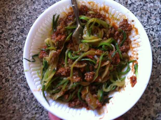 El calabacín (o lo que sea!) "pasta" ya está listo para comer! Sólo tiene que añadir su salsa de pasta favorita, o aceite de mantequilla/blanco1 y queso, salsa de pesto. Rápido y fácil, saludable y delicioso! Vegan! RAW-ISH! Baja en carbohidratos! Platos mínimo! Et cetera.