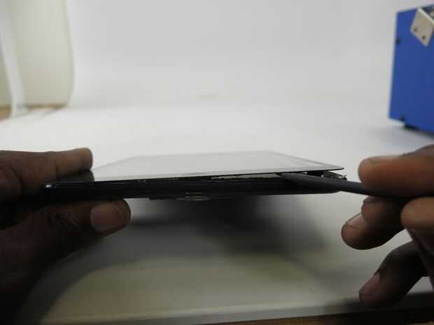 • Dejar su spudger entre el vidrio y estructura metálica en la esquina inferior derecha.