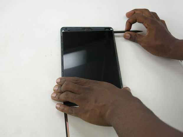 • Esta vez Presione el spudger horizontalmente en la parte superior del iPad.