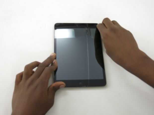 • Uso que eres dedos Presione ligeramente sobre la totalidad de la luneta de iPad (tapa, lados y parte inferior). Inspeccione el iPad para asegurarse de que el digitalizador nuevo quede alineada con el bisel de metal.
