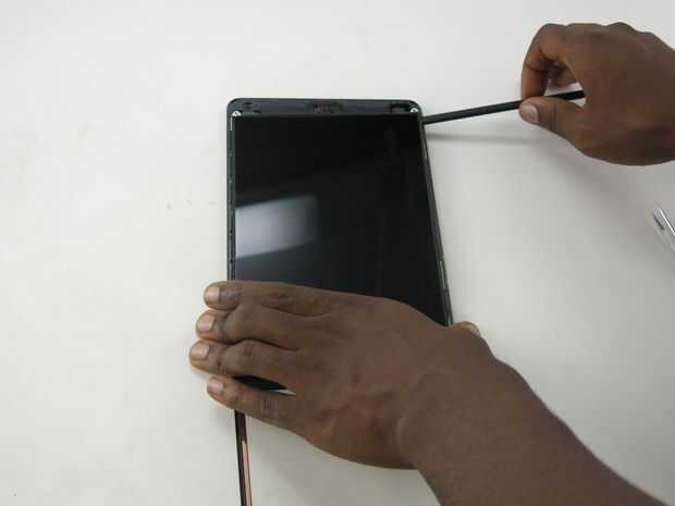 • Esta vez Presione el spudger horizontalmente en la parte superior del iPad.