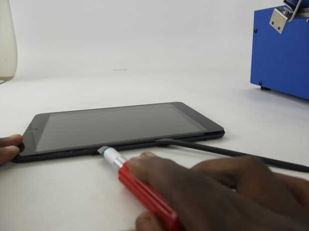 • Ssuperior al llegar a la parte inferior derecha esquina del iPad. Está a punto de otro componente delicado, cable de la antena GPS, que requiere especial atención.