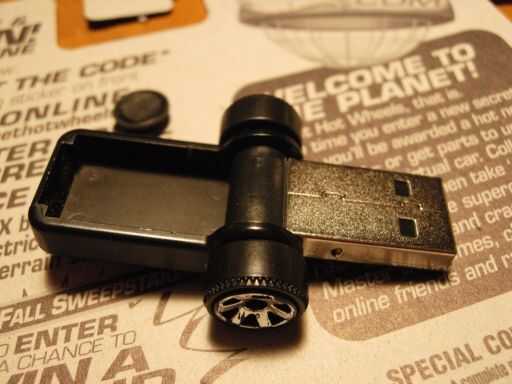 También cortar el lazo de cuerda fuera de la caja de la unidad flash y tuvo que presentar un poco los bordes de la parte inferior para conseguir las ruedas estar en la "tierra".