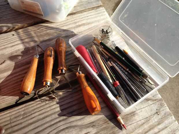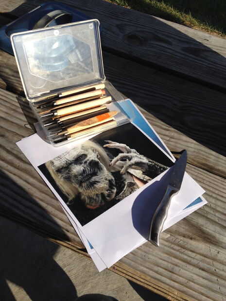 (3) sus herramientas. Usar una variedad de madera y arcilla sculpting herramientas Cuchillos exacto y otros cuchillos de emparejamiento. Básicamente usar lo que funciona mejor para usted y le da los mejores resultados. Para eliminar eficazmente la piel necesita una herramienta de la cinta de arcilla de alguna clase pero que se muestra en la tercera foto.