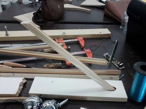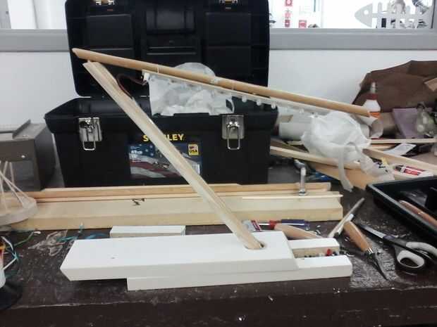 Ahora toma las varillas que se unen por el clavo. Pegue el extremo plano de la barra con los pernos de anilla sobre la superficie del listón de madera de fondo a través del agujero de madera del listón superior. Asegúrese de que después de insertar la varilla, la abertura de la abertura rectangular está todavía ahí (los cables de lo LED serán alimentados por aquí).