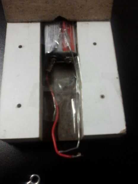 - Deje que la batería superponer ligeramente por el listón de madera superior y dejar los extremos positivos y negativos hacia el exterior.