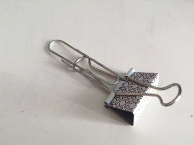 En este paso le damos el clip y la pinza bulldog juntos. Seguir las imágenes y pasos. (Por ejemplo. Paso 1 corresponde a la imagen 1)