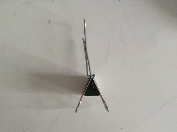 cómo hacer un teléfono fácil en segundos.Dos clips grandesPinzas o un removedor de la grapadoUn par de manosUtilice el removedor de la grapa de pinzas para doblar la punta a 90 grados y luego doblar el lazo interior 45 grados.