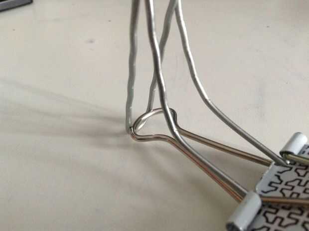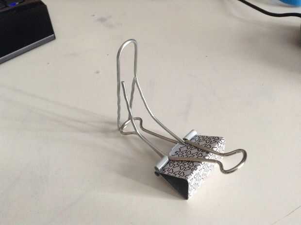 1. Doblar el clip como se muestra en la imagen, teniendo cuidado de no doblar todo, así que 1 lado del clip toca la solapa inferior bulldog clip.