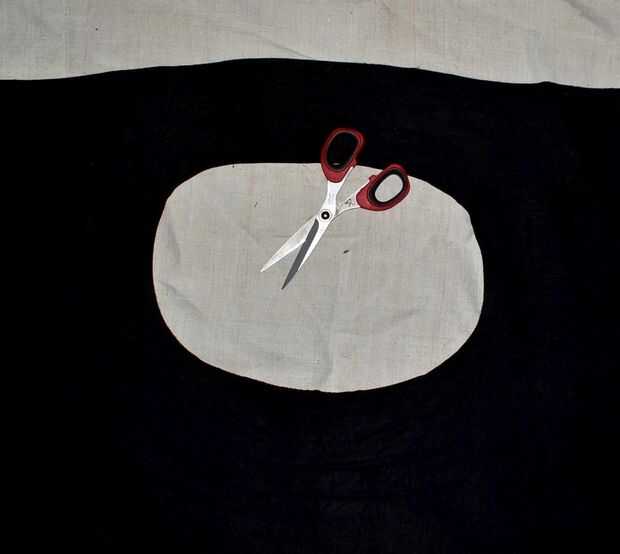 Corte un agujero oval en el centro exacto de la anchura, unos 12 cm (aproximadamente 5 pulgadas) desde el borde superior.