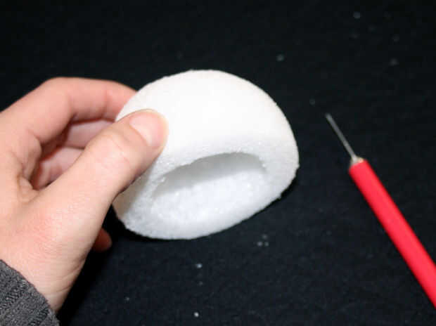 • Ahuecar el interior de la bola más grande, utilizando el círculo como una guía. Compruebe para ver si la pieza del vástago se encajan perfectamente y hacer ajustes según sea necesario,