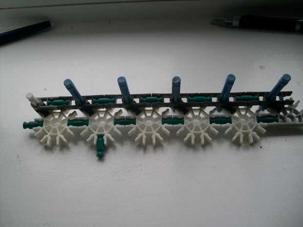 En este tutorial usted aprenderá cómo hacer una banda de goma semi automática pistola de K'NEX.Dependiendo de las bandas de goma usa, la pistola puede contener hasta 8 rondas de munición. Se dispara un tiro para cada tirón del disparador.En un anteri