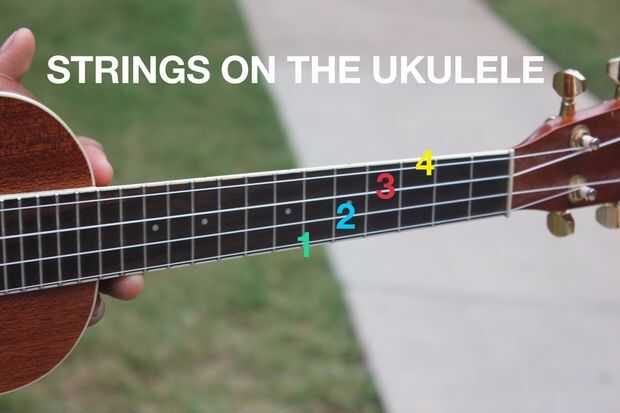 Las cadenas también tienen números (1-4) que se numeran de abajo a la parte superior. El ukelele, como una guitarra tiene trastes en el cuello de un ukelele se dividen en secciones que pueden producir diversas echadas cuando arrancó.