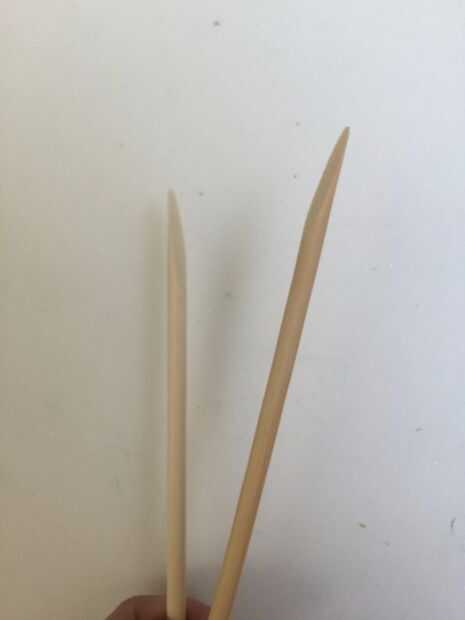 Haz 2 palillos y corte el palillo diagonalmente (en el mismo ángulo) usando el cuchillo del exacto.