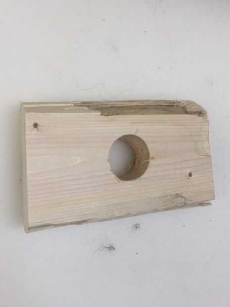 Obtener su pedazo de madera y perfore un agujero con el radio mínimo 0,7 "y máximo de 0.9". Si el agujero es demasiado pequeño, su no va a caber los palillos y el cable de la toma pero si es demasiado grande la toma de corriente pasará a través.