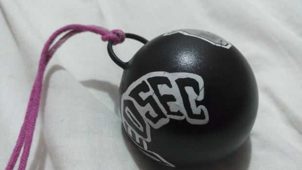 - Coloque un pequeño anillo a una esfera más o menos del tamaño de una bola de billar.
