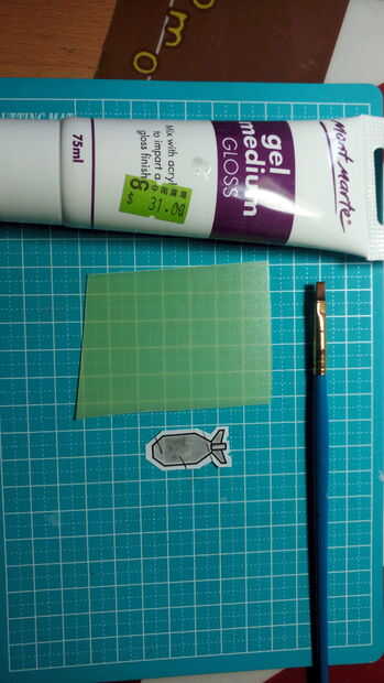 - Brocha una capa delgada de medio de Gel en la parte superior de la etiqueta engomada.
