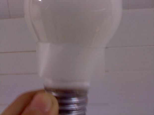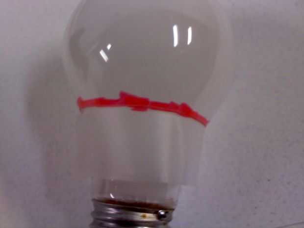 soy totalmente incapaz de trazar una línea estrecha, así que poner cinta alrededor de donde termina el cuello de la bombilla. luego utiliza el rotulador rojo para hacer la línea y sacó la cinta. usar el dedo para frotar cualquier tinta que salió debajo de la línea.