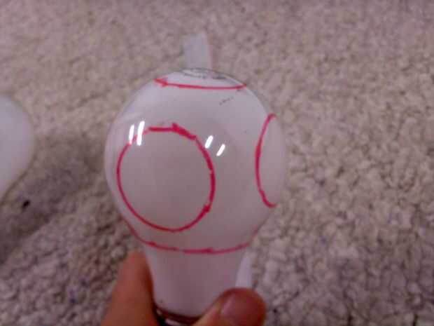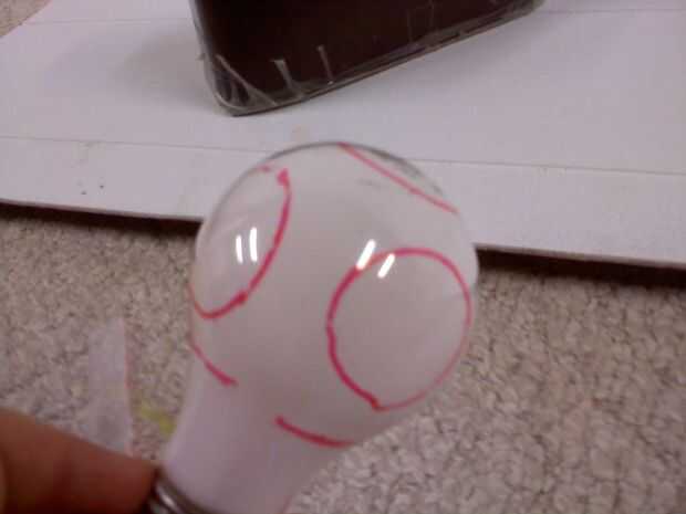este es por lejos el más difícil step.using la tapa de la botella, hacer círculos con tu rotulador. Me pareció mucho más fácil si tenía la tapa de un lado, el rotulador en la otra y la bombilla de mi dedos de los pies. después de que termines fijar cualquier tinta puede han frotado.