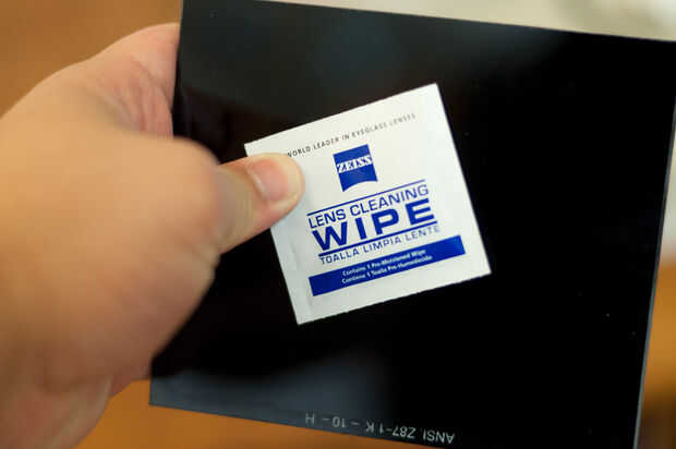 En primer lugar, usted necesita limpiar las superficies de vidrio. Limpiar el filtro de repuesto. Limpie su elemento frontal. Y por último, limpie el cristal de tu soldador. También trate de no dañar el envase de vidrio de tu soldador. Puede utilizar el envase para guardar su pronto a ser el nuevo filtro ND. Usé un Giottos Rocket aire para soplar el polvo fuera de todo. Entonces usé algún paño de la lente para limpiar las superficies de vidrio.