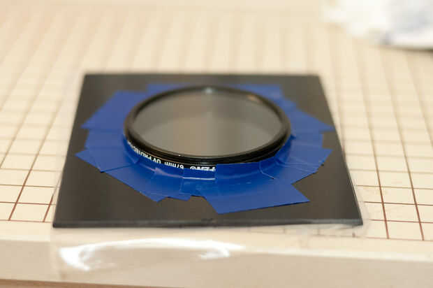 Con el borde del filtro UV pegado al vidrio de soldador, su filtro ND es completa. Usted mismo palmaditas en la espalda. Sólo has construido tu propio filtro ND 10. También puede cinta los bordes del vidrio de soldador para evitar el astillado. Ahora estás casi listo para montar el filtro ND.