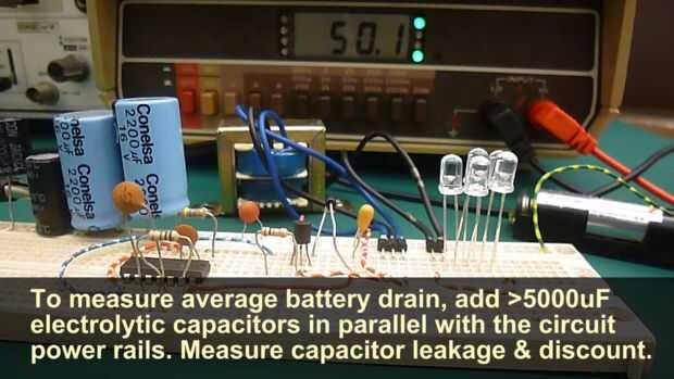 el primer proyecto jamás construido fue una luz que titilaba y apagar. Tomó nueve partes y un par de cables. Agradable y fácil.Con algunas resistencias y condensadores, he configurado básicamente un chip 555 temporizador como oscilador (término fanta